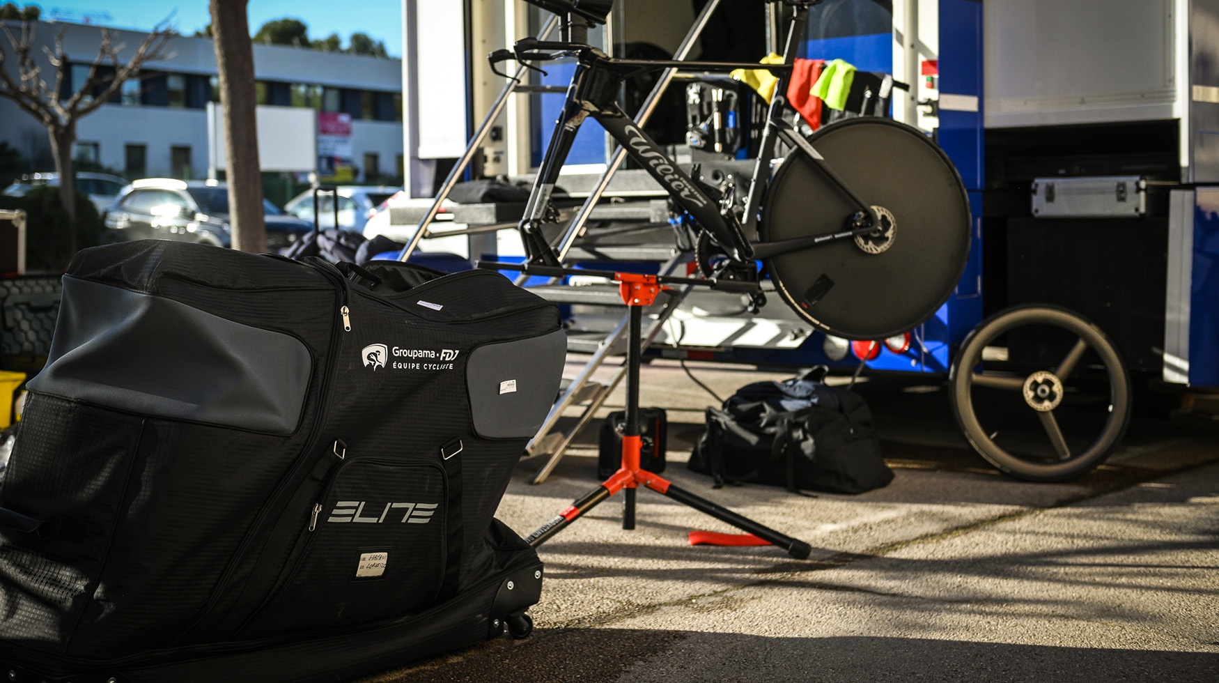 In viaggio, i team conteranno sul Borson, la borsa da trasporto progettata per proteggere la bici durante le trasferte aeree. Con ruote integrate e un sistema di montaggio che riduce al minimo lo smontaggio della bici, assicura protezione totale per telaio, ruote e deragliatore, rendendo ogni viaggio più semplice e sicuro.