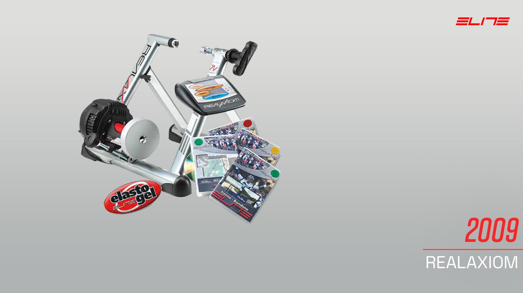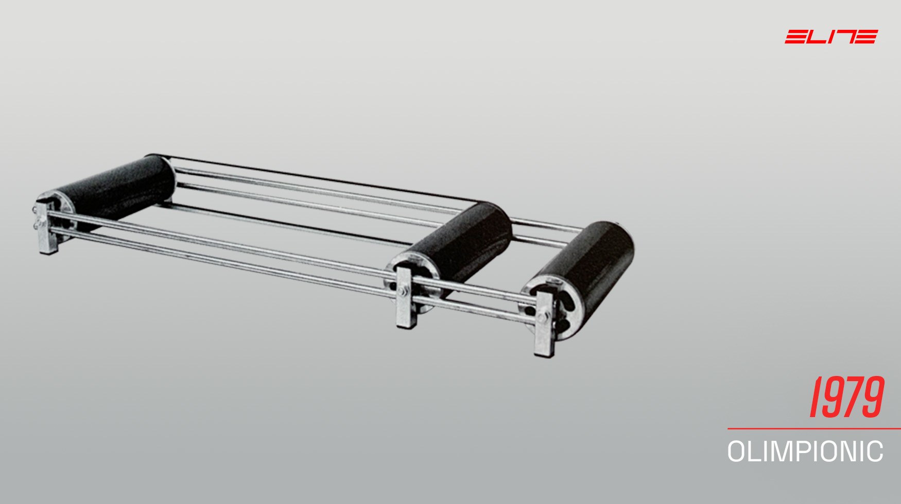 Il primo prodotto di Elite, l’Olimpionic, era un set di roller su cui posizionare la bici per pedalare. Anche nelle sue versioni più moderne, questo tipo di roller richiede una buona dose di equilibrio, e il suo design è rimasto pressoché invariato, rappresentando la forma più essenziale di allenamento indoor.
