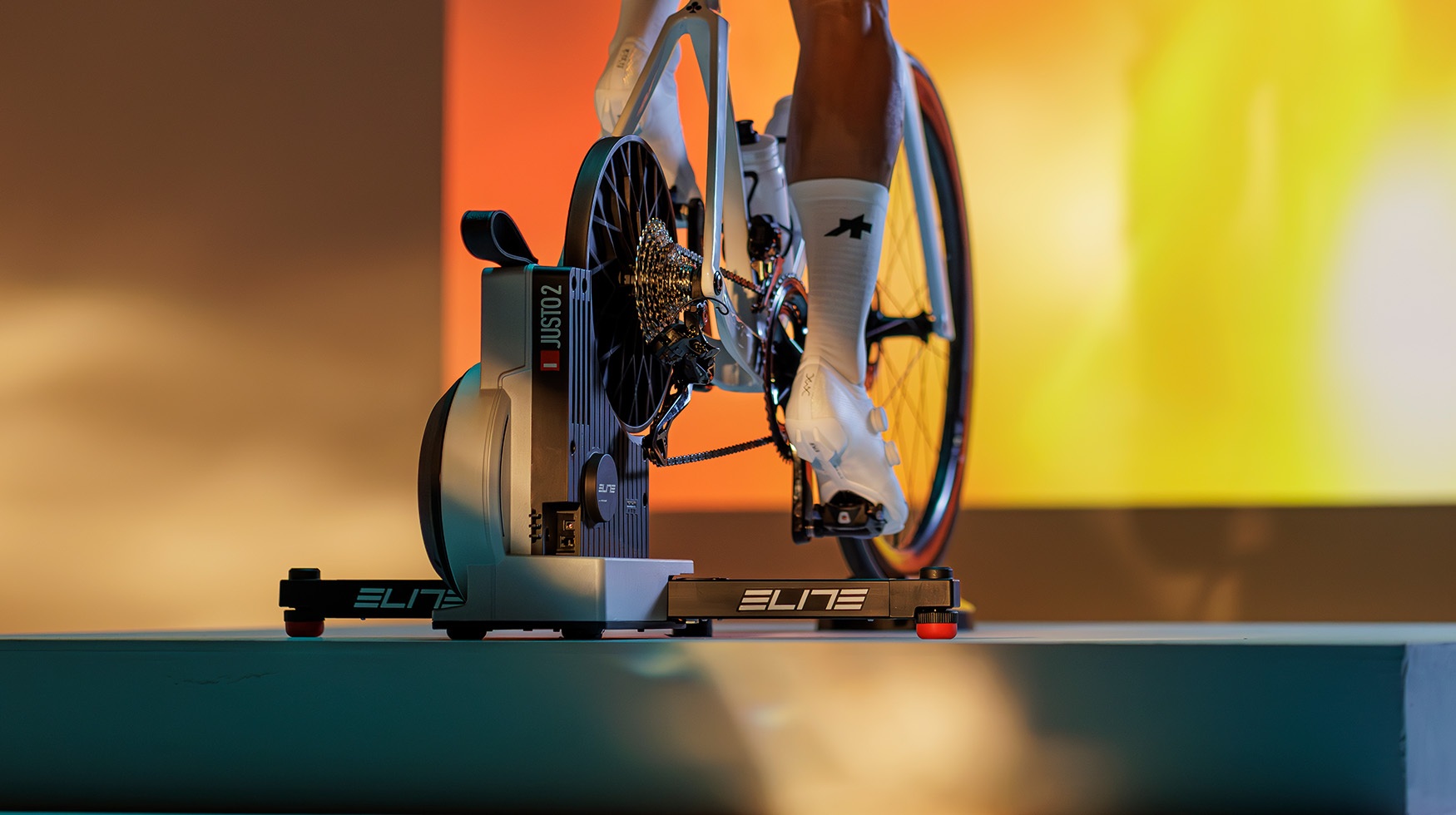 Justo 2 è il top di gamma dei rulli Elite e lo smart trainer scelto da Tadej Pogačar e UAE Team Emirates per riscaldamenti e lavori strutturati ad alta precisione.