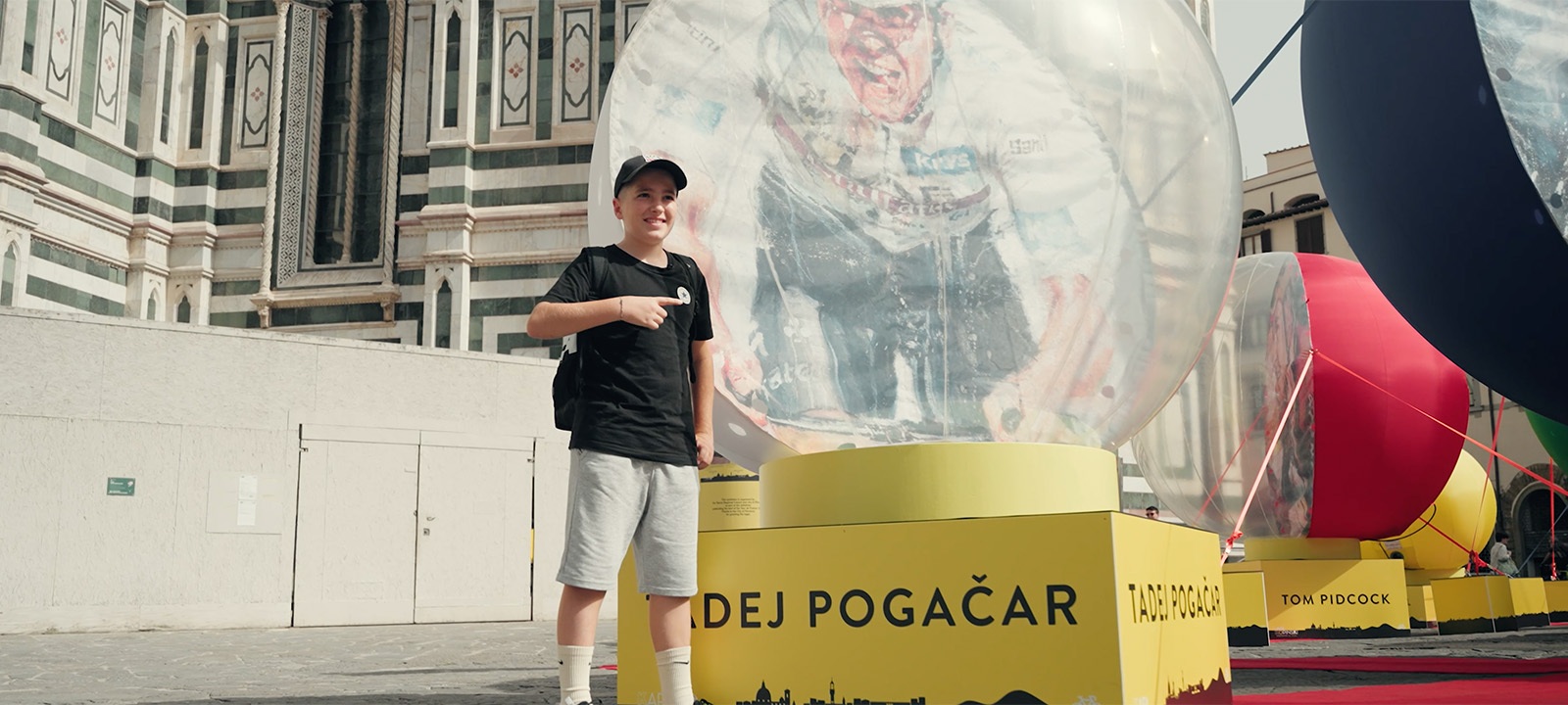 Tadej Pogačar, in fuga solitaria durante la tappa 20, con 21 chilometri ancora da percorrere, si ritrova accanto un giovane tifoso. Il ragazzino corre al suo fianco, motivandolo senza sosta.