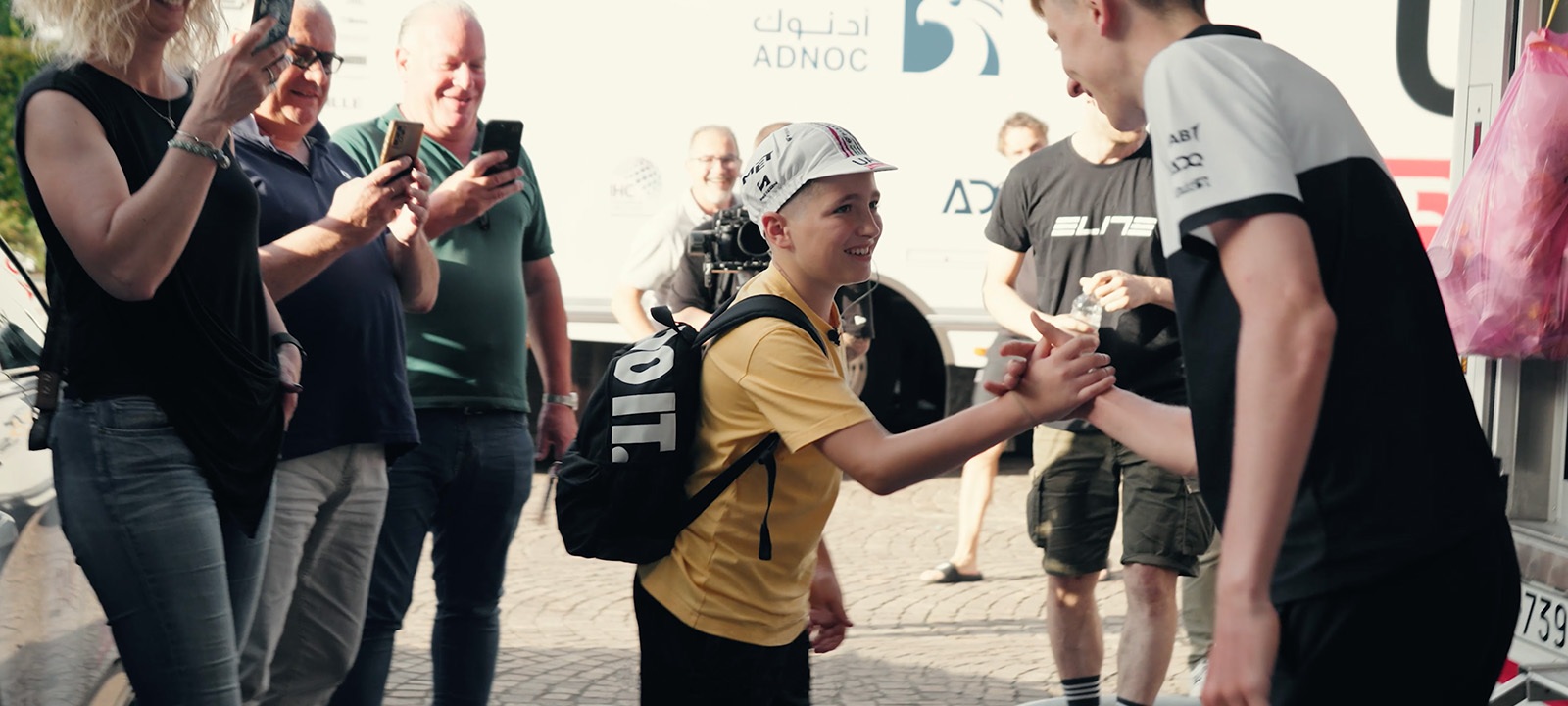 Il momento in cui Mattia ha incontrato Tadej è stato immortalato dalle telecamere, e chi era presente lo ha definito “magico”. Elite aveva infatti volutamente depistato Mattia, dicendogli che “a causa di impegni di gara, Tadej non sarebbe stato disponibile”.