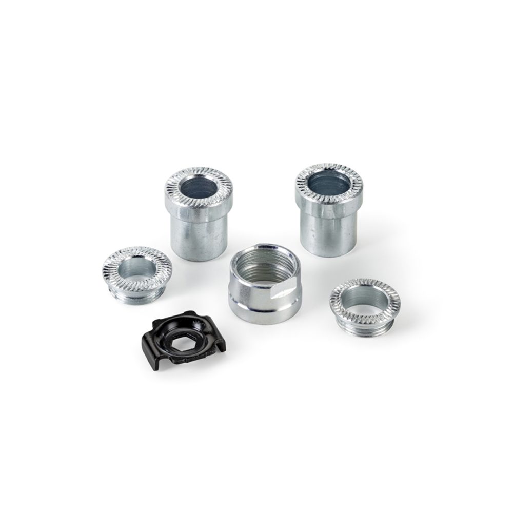 Nel sacchetto adattatori sono inclusi: quick release 130-135 x 5 mm, perno passante 142 x 12 mm, due anelli distanziali per cassetta pignoni 9-10 velocità, chiave E5 da 77 mm e adattatore destro L = 130-135 mm.