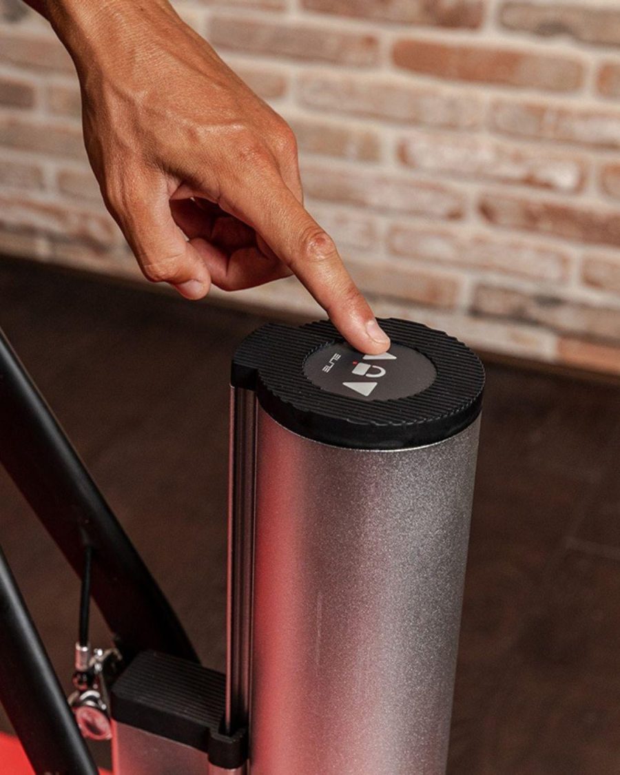 Rizer regola automaticamente l’inclinazione della bici in base alla pendenza indicata dal software. Se preferisci un controllo diretto, puoi passare alla modalità manuale e usare la tastiera integrata sulla parte superiore per gestire i comandi principali.